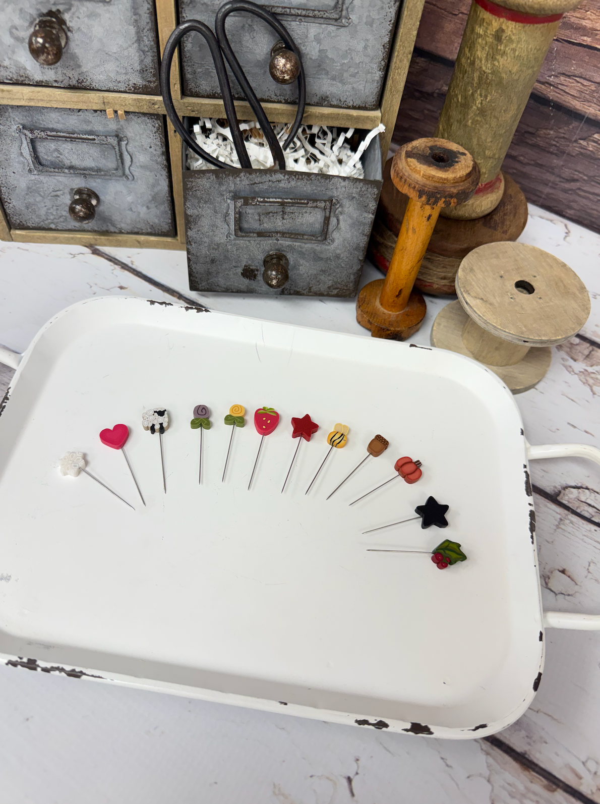 Pin pack includes:12 Just Another Button Company pins for each month. Each pin is hand crafted.