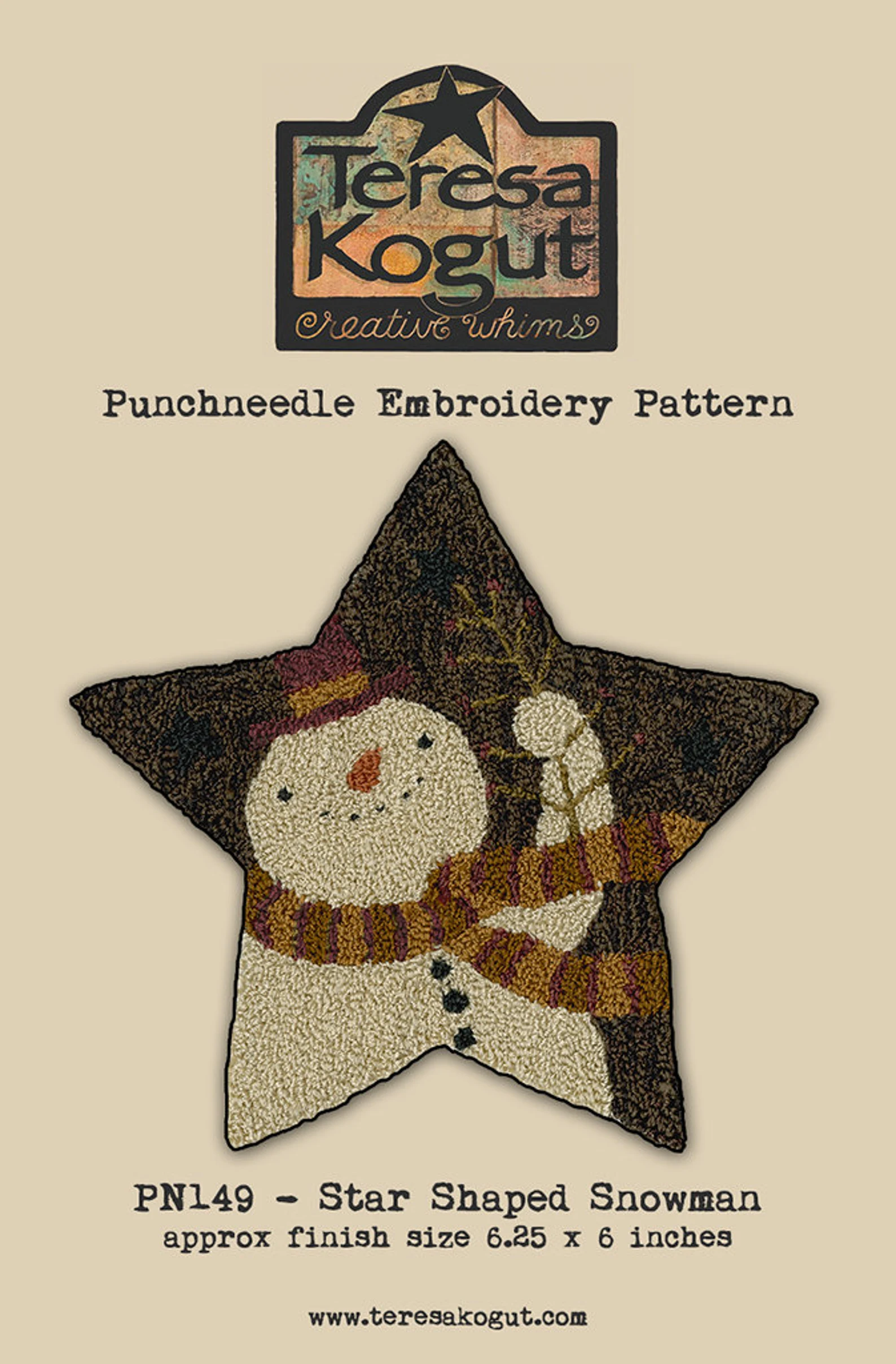 Star-Shaped Snowman Punchneedle Embroidery by Teresa Kogut - Paper Pattern