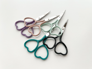 These small stainless steel scissors with darling heart shaped handles are ideal for various needlework uses such as: embroidery, cross stitch, sewing, crochet, knitting and more.